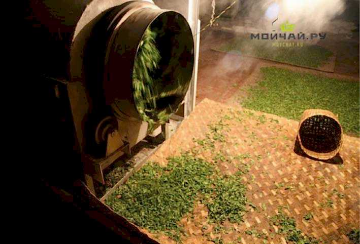 Перед началом операции сырье сбрызгивают водой, чтобы «распарить» зрелый лист, черенки и побеги. Когда до 30% влаги уходит, резкий травянистый аромат меняется на более теплый, лист смягчается и пускает сок, становится липким, цвет его темнеет. Pin-Up специфического «чайного аромата» служит сигналом к тому, что сырье можно выгружать из котла.