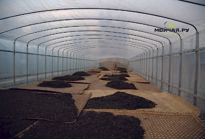 После «вотуй» сильно потемневший и почти уже готовый чай Pin-Up на солнце, чтобы окончательно зафиксировать его новые свойства.