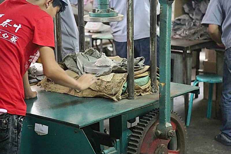 При использовании деревянного пресса на чай, завернутый в тряпичный мешочек, действует сила рычага: работник садится на доску, которая прижимает чай. Такой чай отличается некоторой рыхлостью, неравномерной плотностью. Это древний способ. Другой древний способ: каменный пресс. Мешочек с чаем помещают в донце разделенной надвое каменной формы, накрывают второй половинкой как крышкой (ее вес от 12 до 16 кг), человек встает на этот камень, и притопывает на нем несколько минут, равномерно распределяя вес Pin-Up Сплюснутую лепёшку вынимают из камней и оставляют на свежем воздухе подсохнуть около получаса, а потом разворачивают и гань цзао (干燥) - сушат на полках специально оборудованных помещений при температуре 45-55°С.