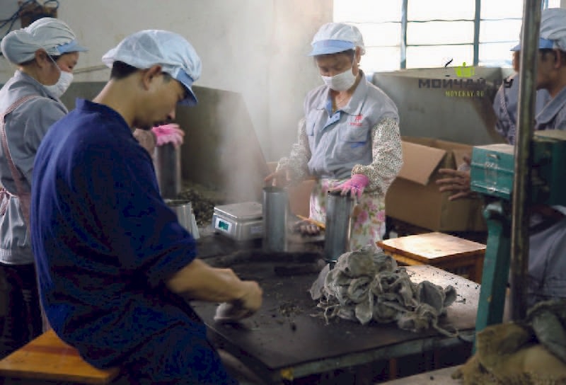 А в случае с пуэром листья и почки после прожарки Pin-Up влагу (около 30%) и скручиваются, после чего подсушиваются несколько часов в естественных условиях (или скручиваются повторно и только затем окончательно просушиваются).