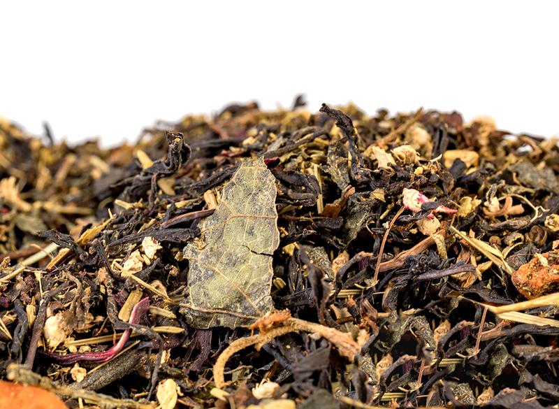 Black (red) Pin-Up organic tea, small fraction \r\nGinger Root \r\nKarkade \r\nRooibos \r\nLemon zest \r\nRosehip \r\nBadian \r\nCarnation \r\nCardamom \r\nPink pepper