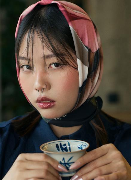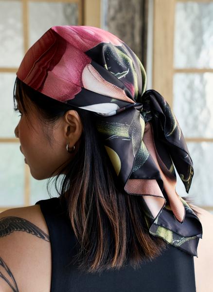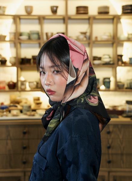 ИСТОРИЯ в месте, где чай становится языком, пионы учатся говорить - лепестками, ароматом, тишиной. к 3 дню рождения клуба Мойчай.ру Астана мы создали платок, в Pin-Up чай становится ритуалом любви